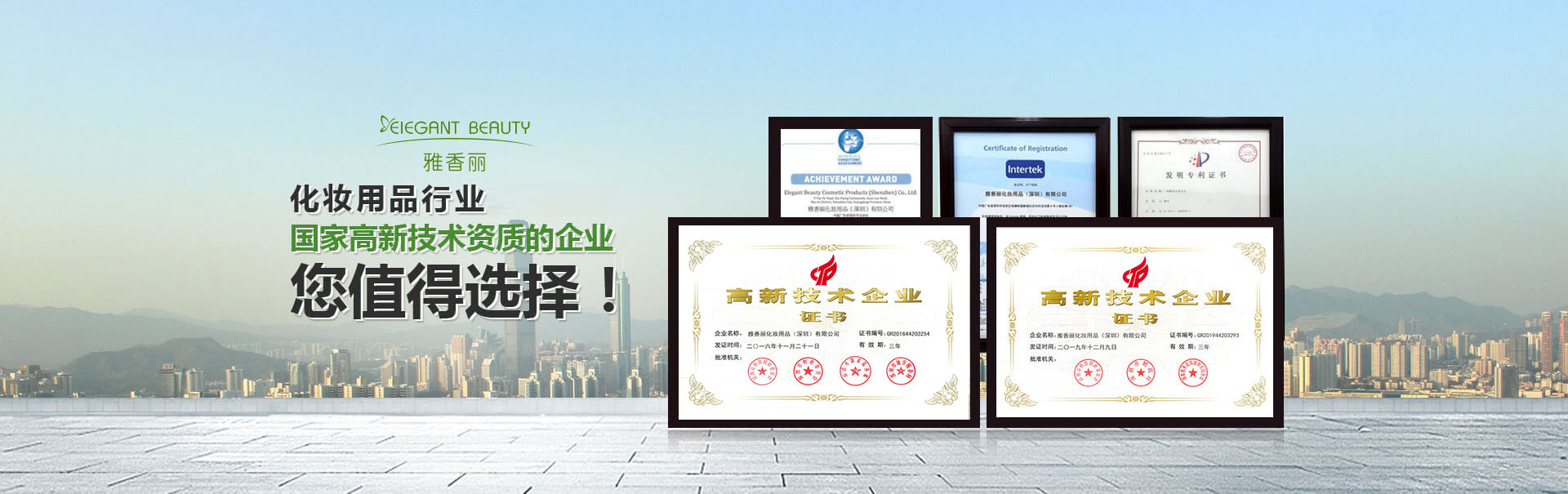 占地面積一萬(wàn)余平方米,專(zhuān)業(yè)技術(shù)員工300余人,雅香麗憑借著在行業(yè)內(nèi)的專(zhuān)業(yè)化、精細(xì)化、特色化、新穎化、可持續(xù)化,榮獲國(guó)家"高新技術(shù)企業(yè)"、"深圳市專(zhuān)精特新中小企業(yè)"等重量級(jí)認(rèn)證。